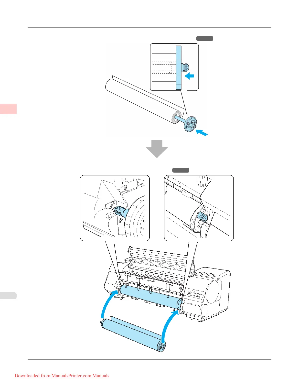 2. Load the roll on the Roll Holder. (See "Attaching the Roll Holder to Rolls.") →P.774