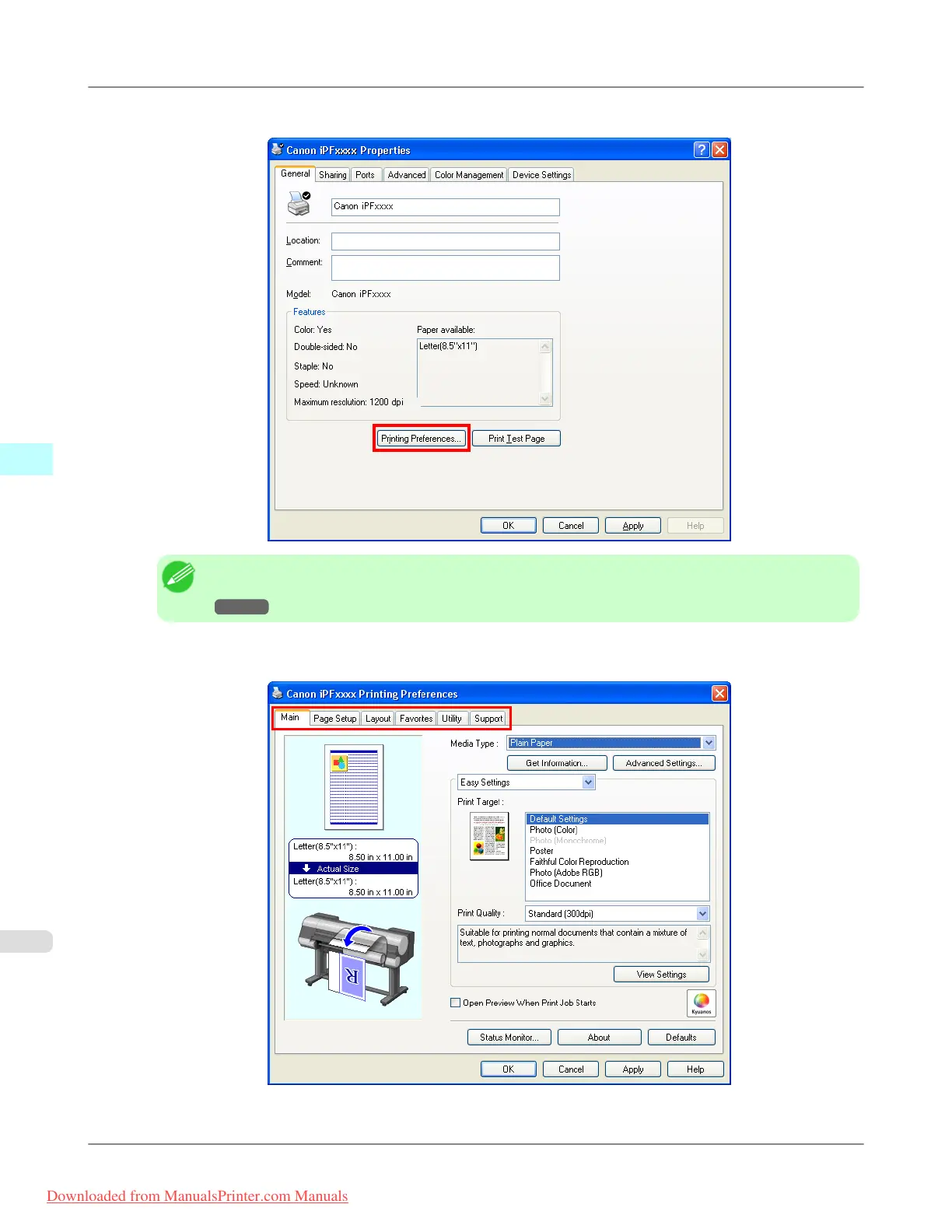 3. Click Printing Preferences to display the Printing Preferences dialog box, titled with the name of this printer.