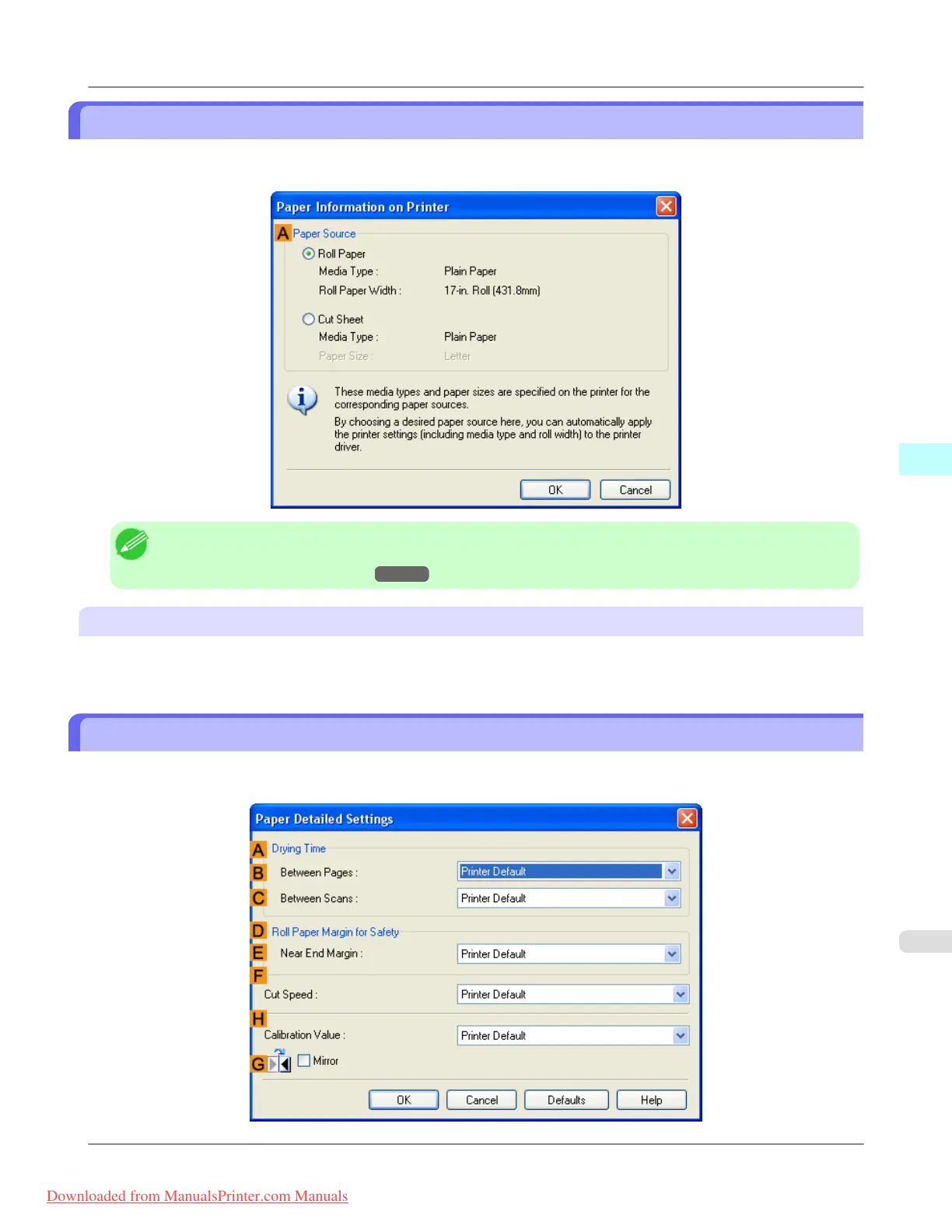 • To display the Paper Information on Printer dialog box, on the Main sheet, click Get Information by