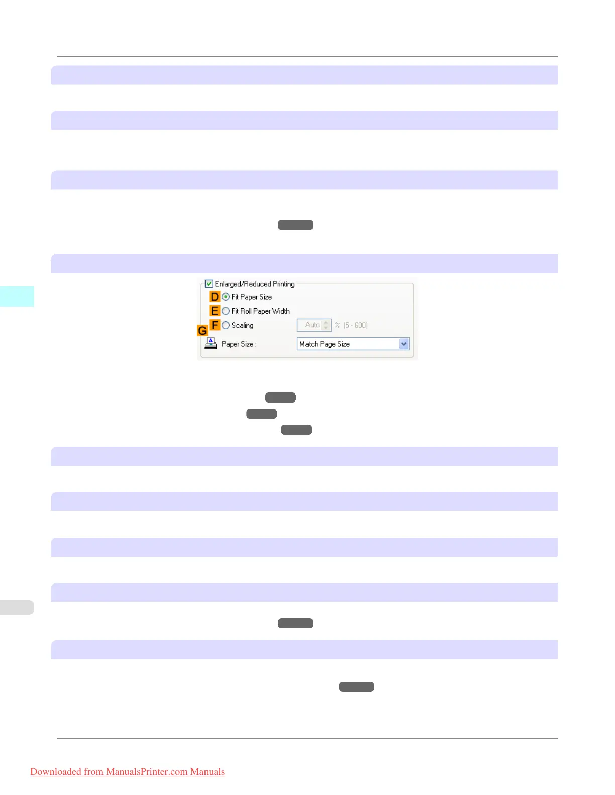 Prints documents at their actual size. This function is available when you have selected the size same as the width of Roll