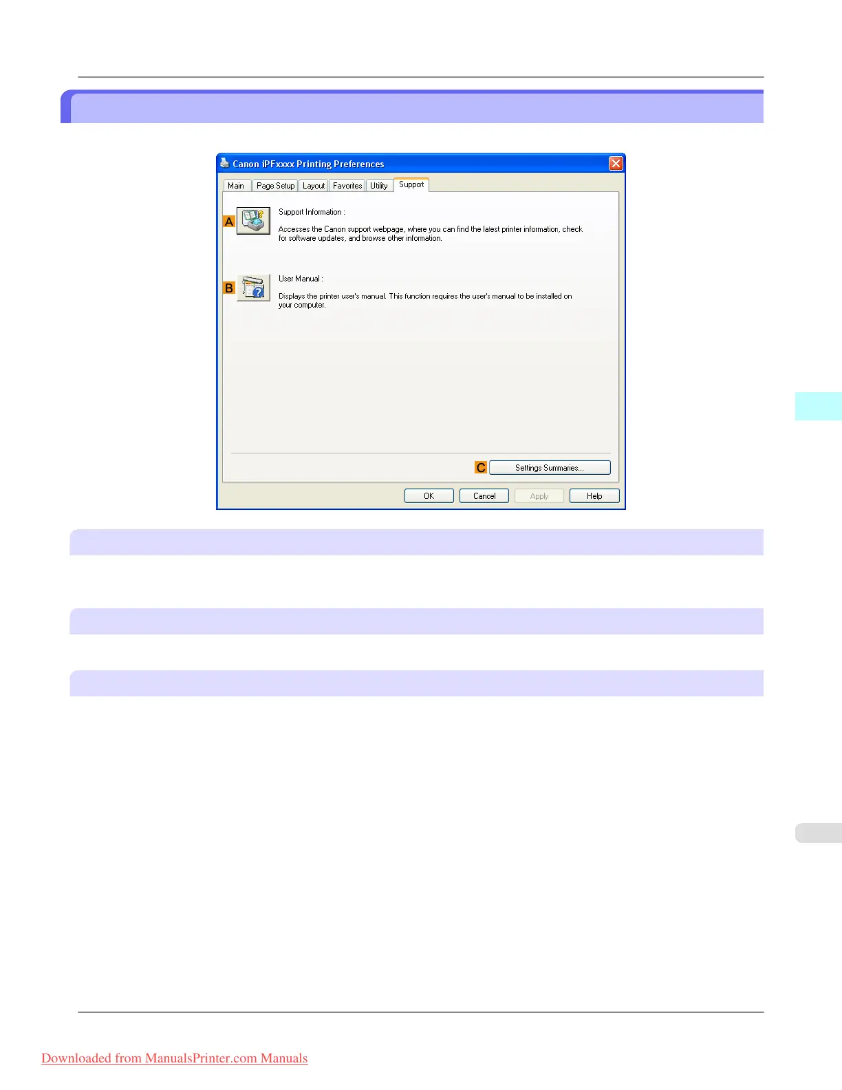 Click to view the printer user's manual. This function requires the user's manual to be installed on your computer.