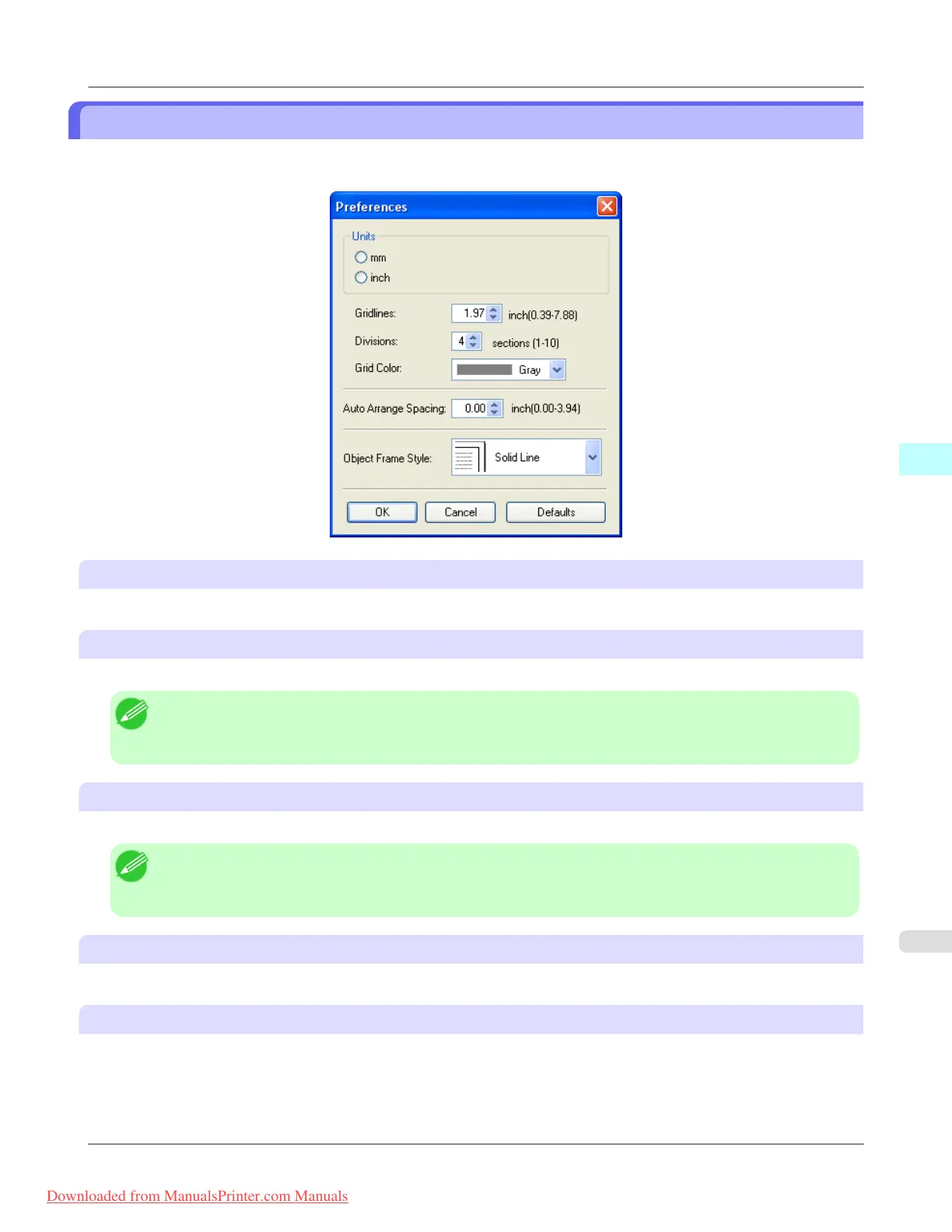You can input a grid line width value in numerical characters so that they serve as a guide to laying out objects.