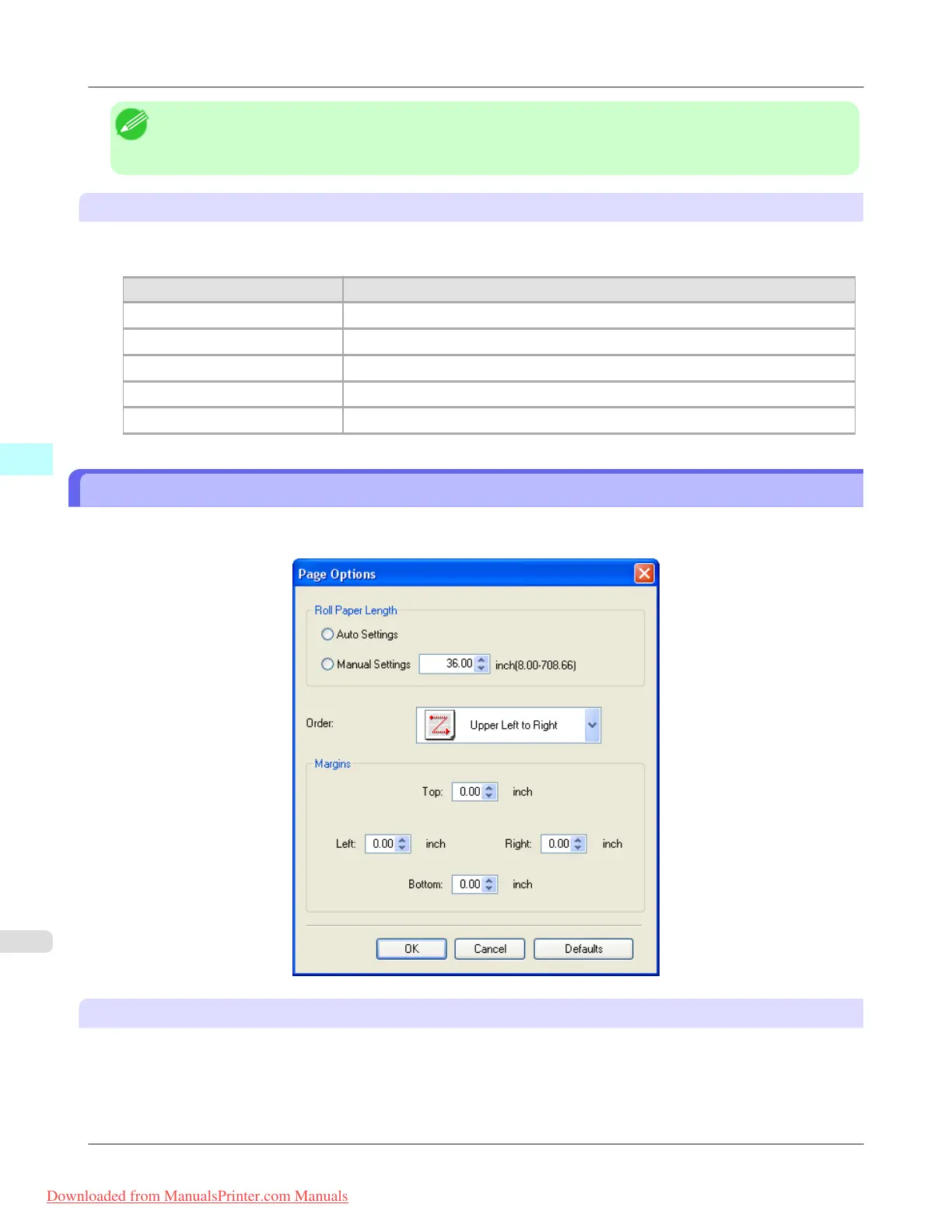 This dialog box appears when you select Page Options from the File menu. This allows you to configure the roll paper