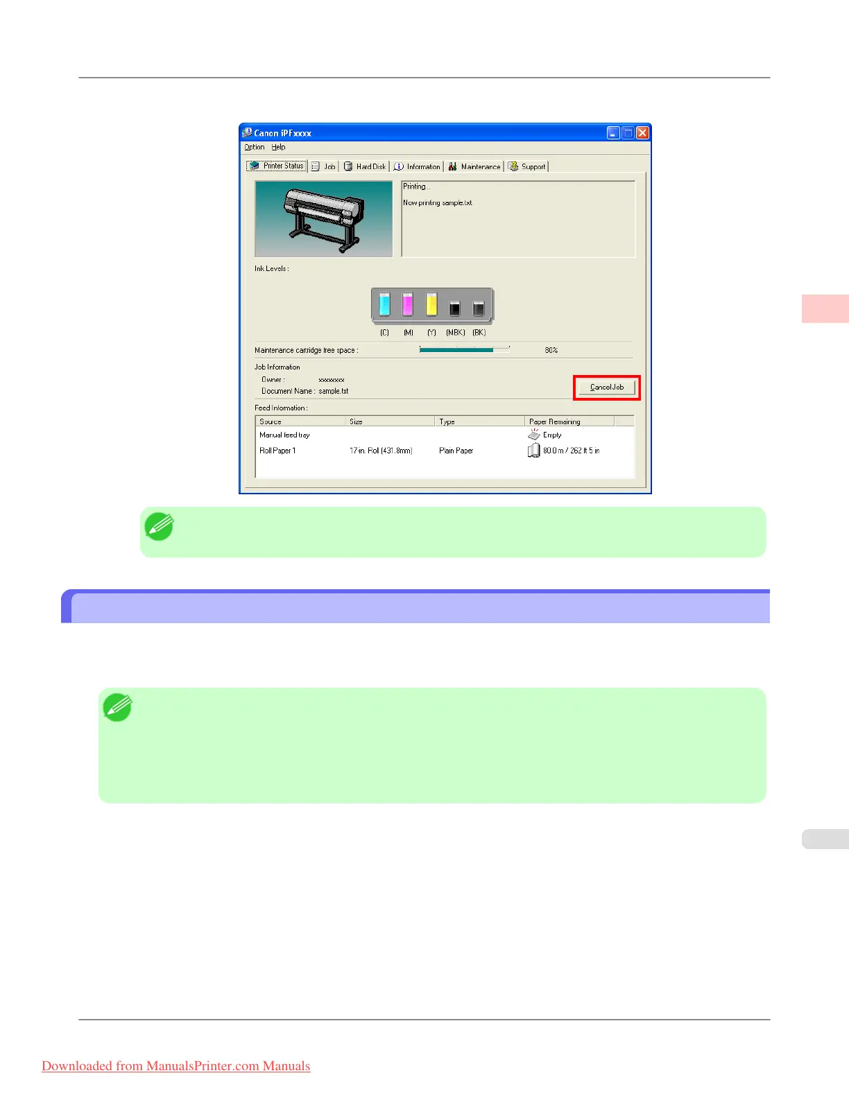 Otherwise, you can cancel jobs from imagePROGRAF Printmonitor if they have been received by the printer or are current-