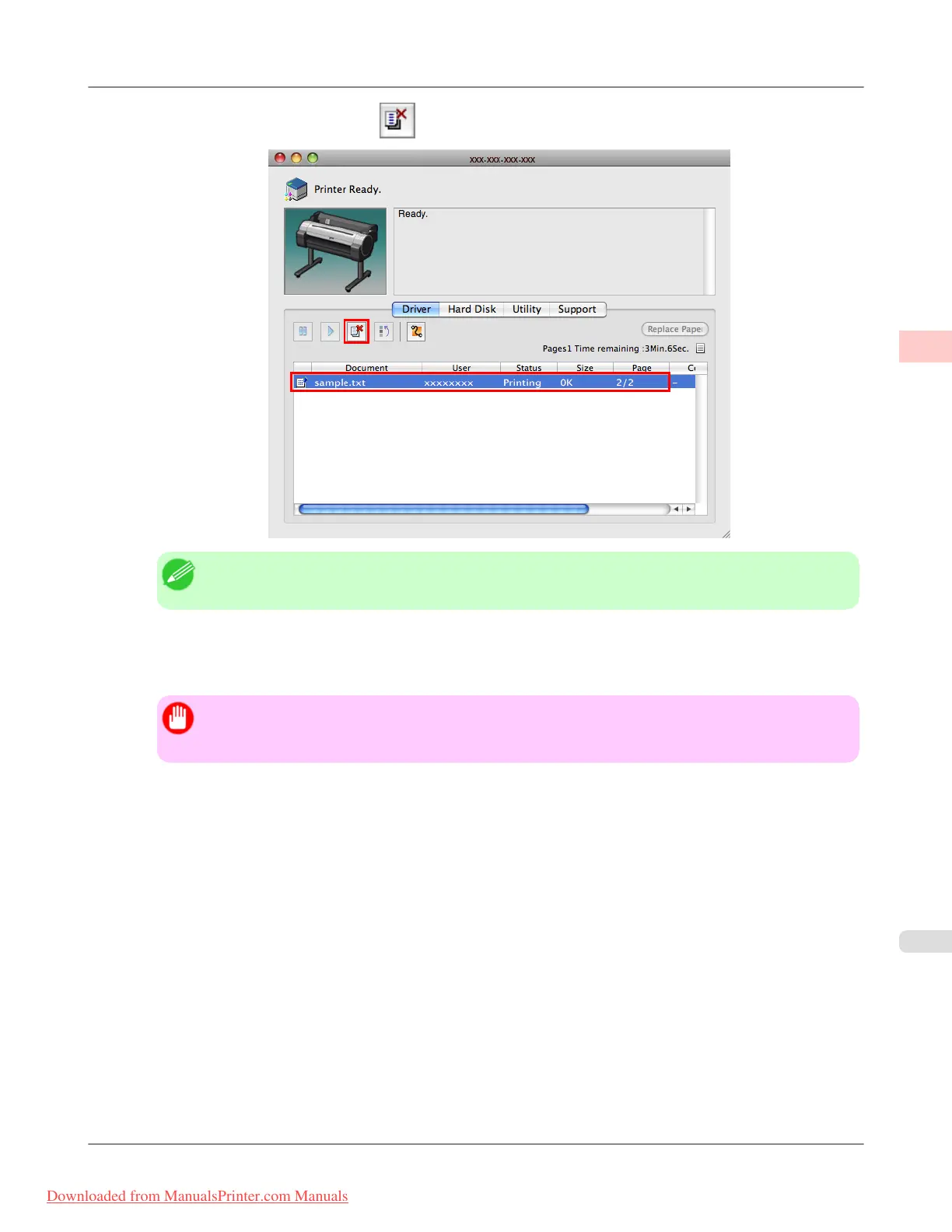 4. Select the print job to cancel and click to delete the print job.