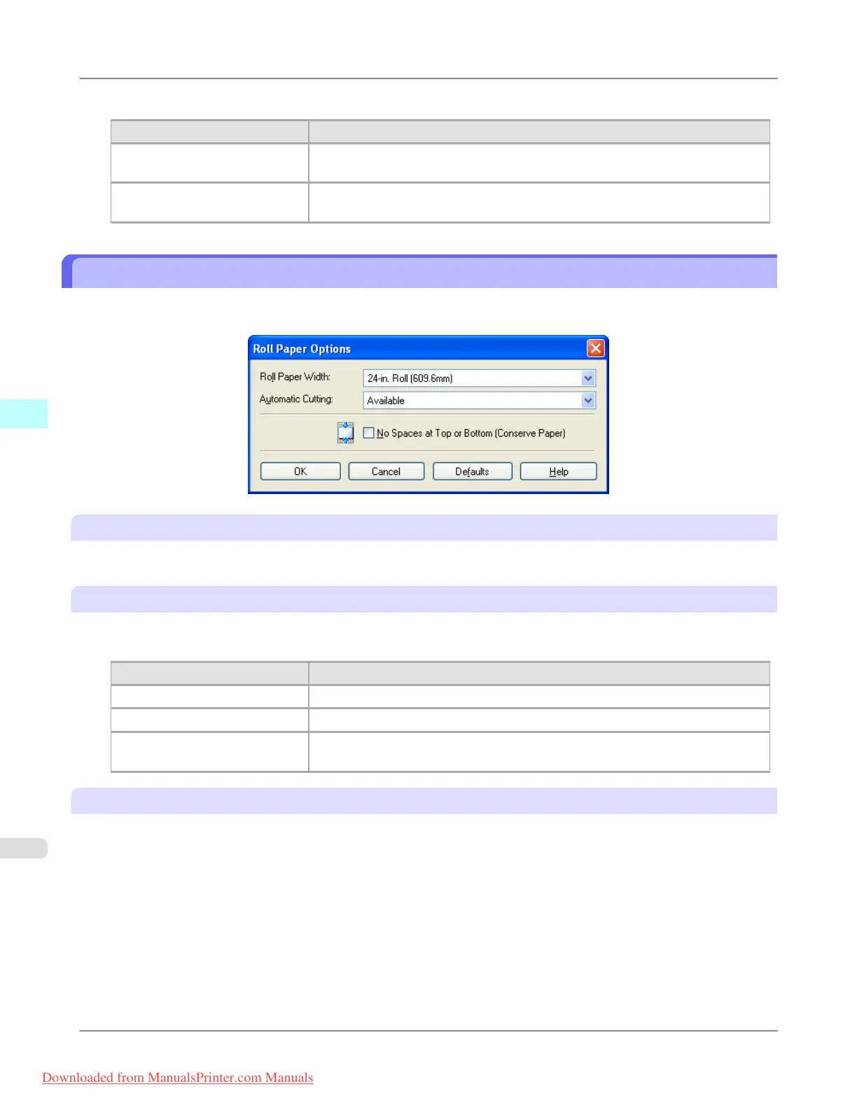 This dialog box appears when you click the Roll Paper Options button on the Page Setup Sheet. You can set the roll paper