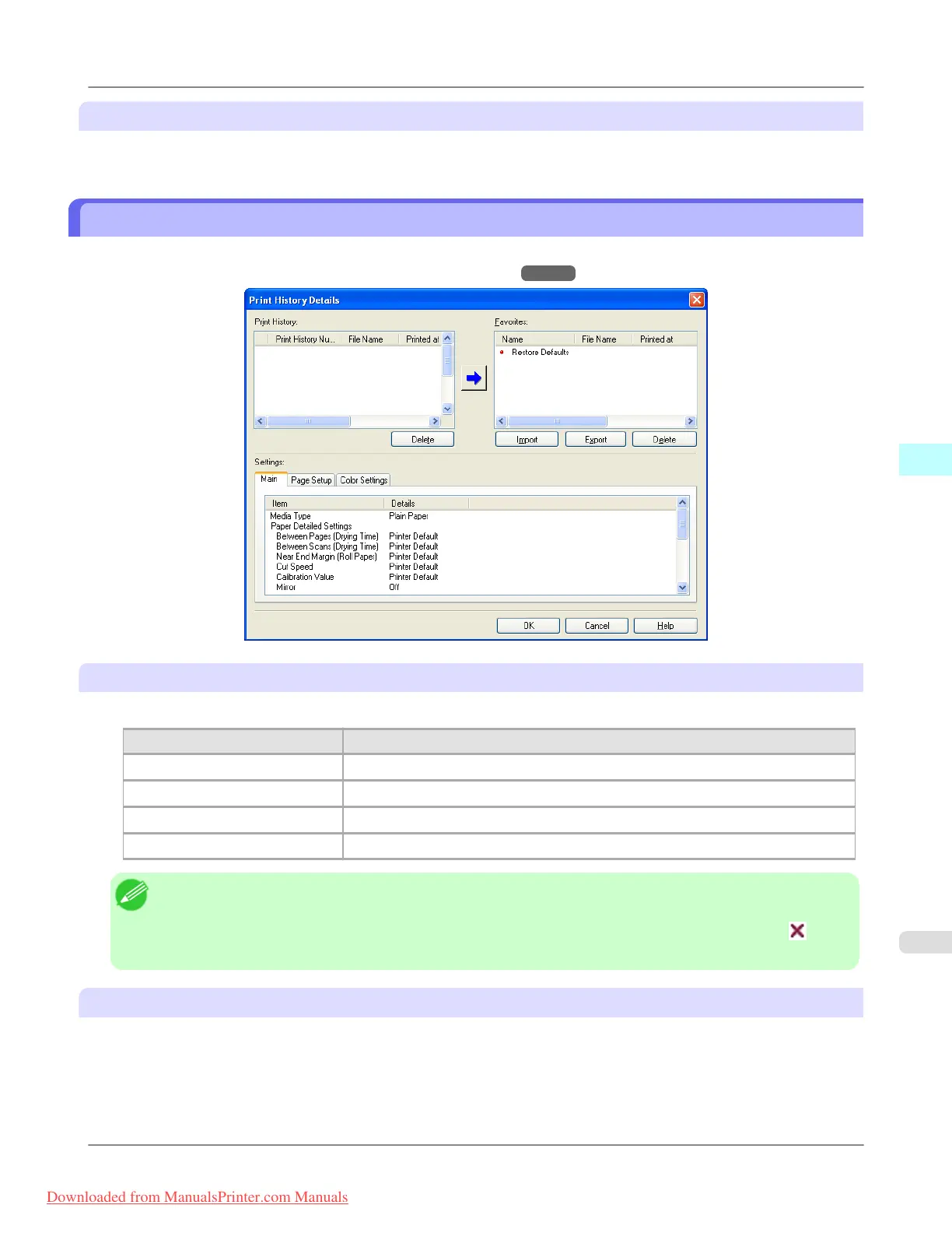 This dialog box appears when you click the Details button on the Print History Sheet. This controls print history. For more