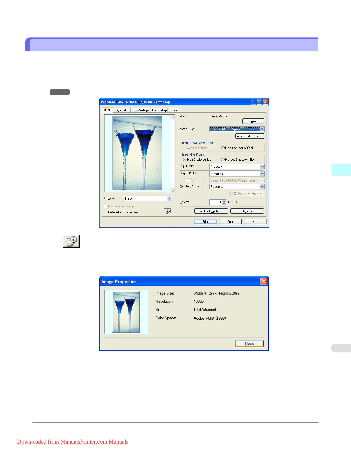 1. Select the Adobe RGB16bit image data in Photoshop and start Print Plug-In. (See "Starting from Photoshop.")