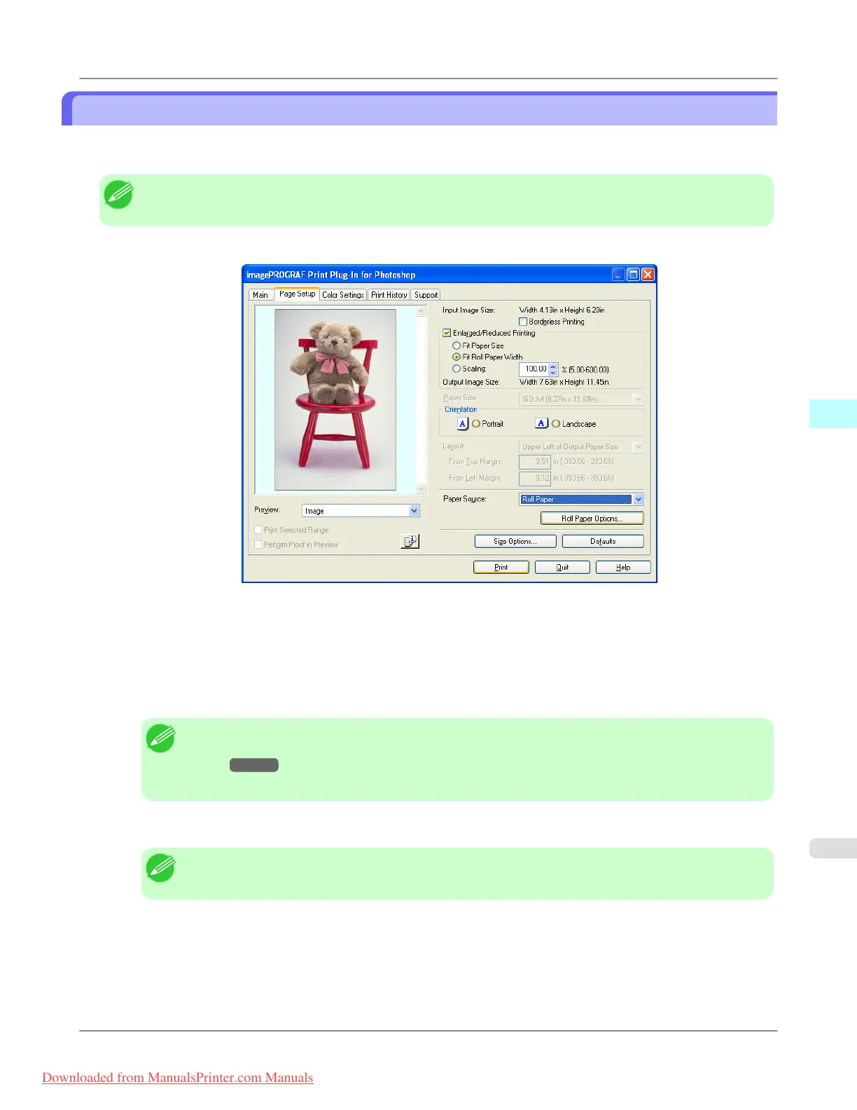 • For more information about the Roll Paper Options dialog box, see "Roll Paper Options Dialog