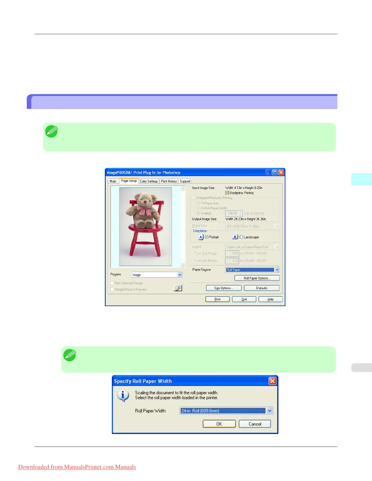 • Select the width for roll paper set in the printer in Roll Paper Width in the Specify Roll Paper