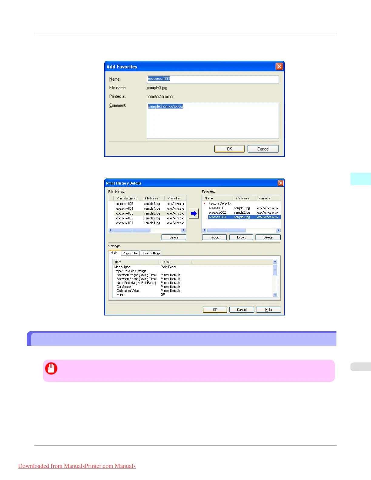 5. In the Add Favorites dialog box input the name of the print history in Name, input a comment in Comment, and