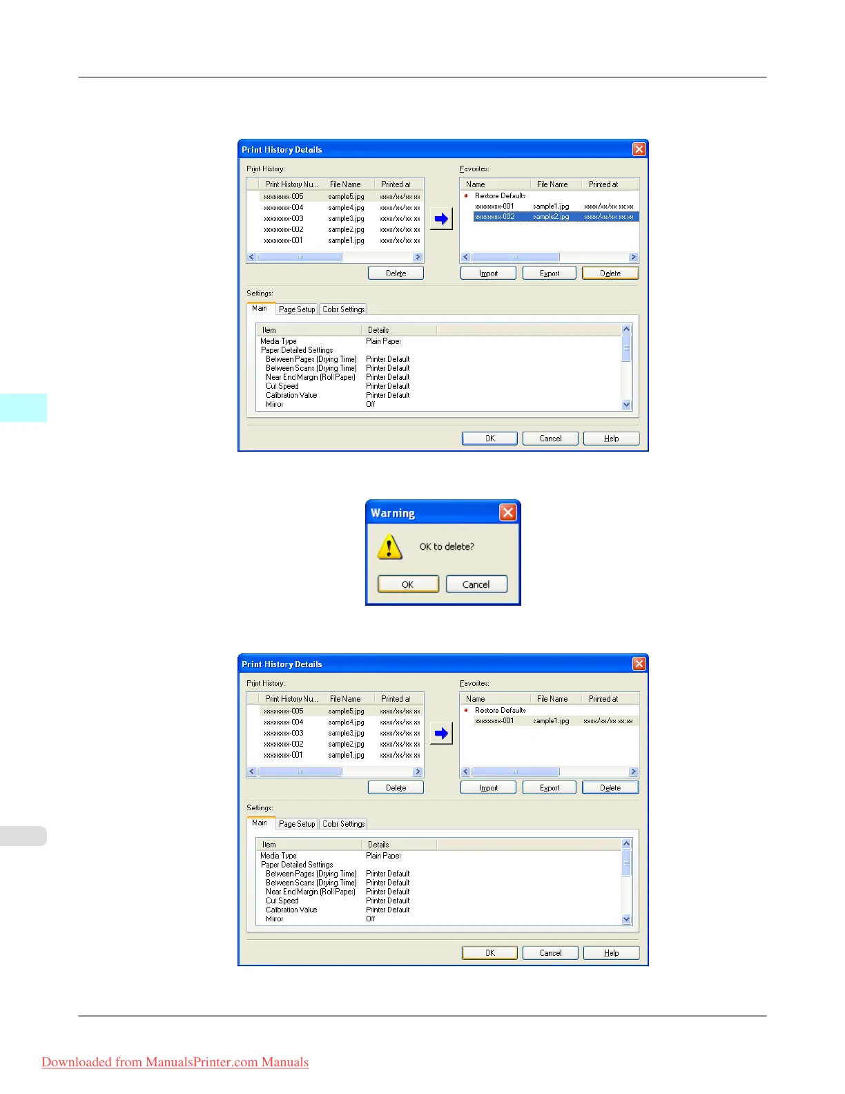 3. Select the print history you wish to delete from Favorites in the Print History Details dialog box, and click the