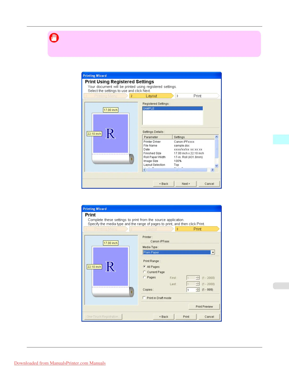 iPF8300 Print Using Registered Settings (Word)