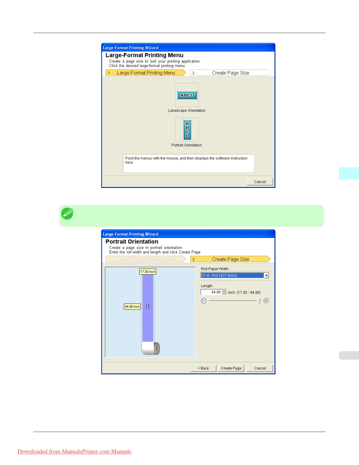 • The steps taken to create a Portrait Page Size will be used as an example to explain the procedure.