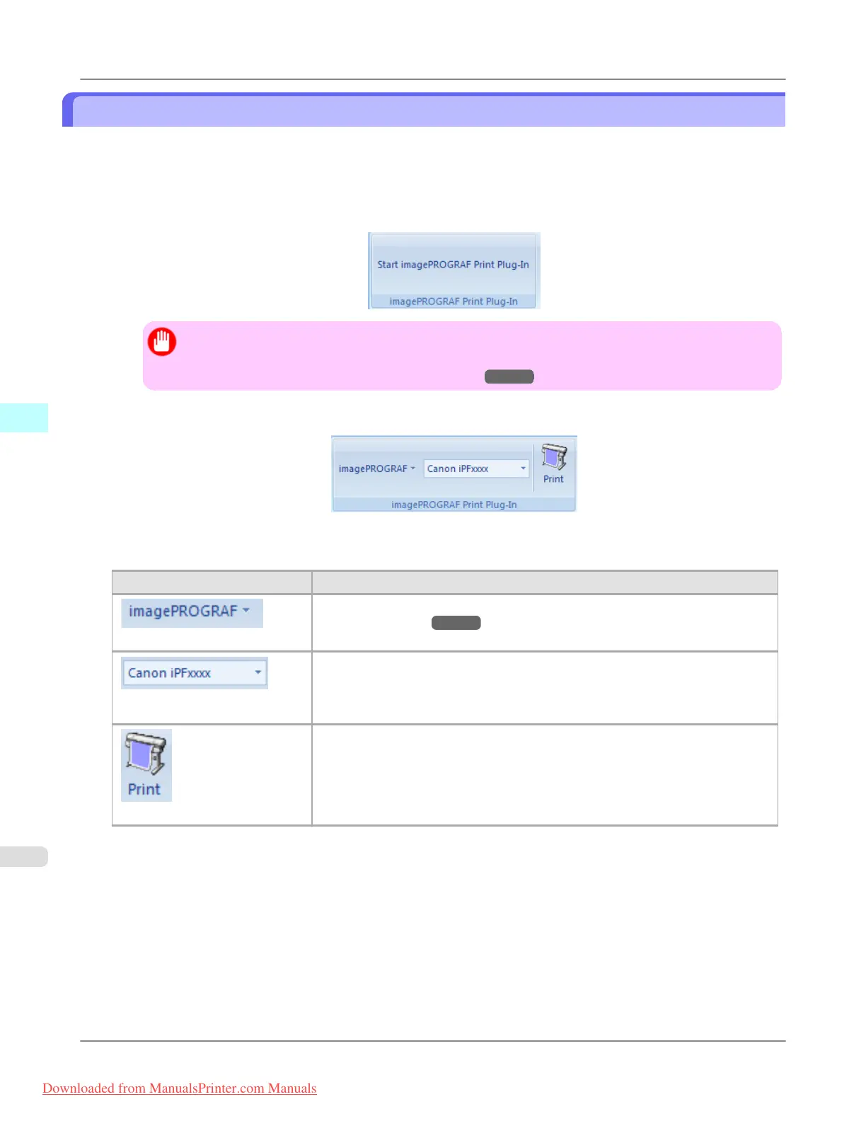 • If the imagePROGRAF Print Plug-In toolbar/ribbon is not displayed, refer to the following.