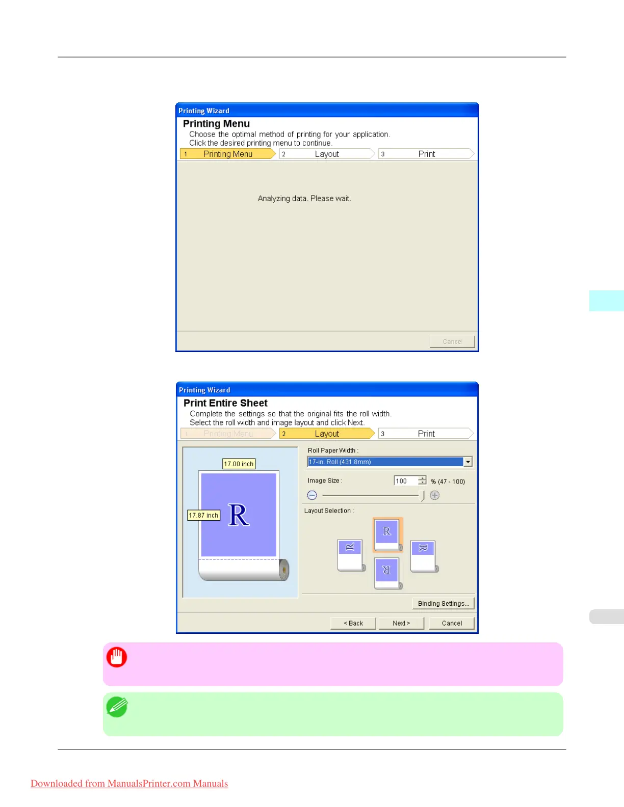 • If data analysis requires time, a message dialog will appear. If you select No, you will return to the