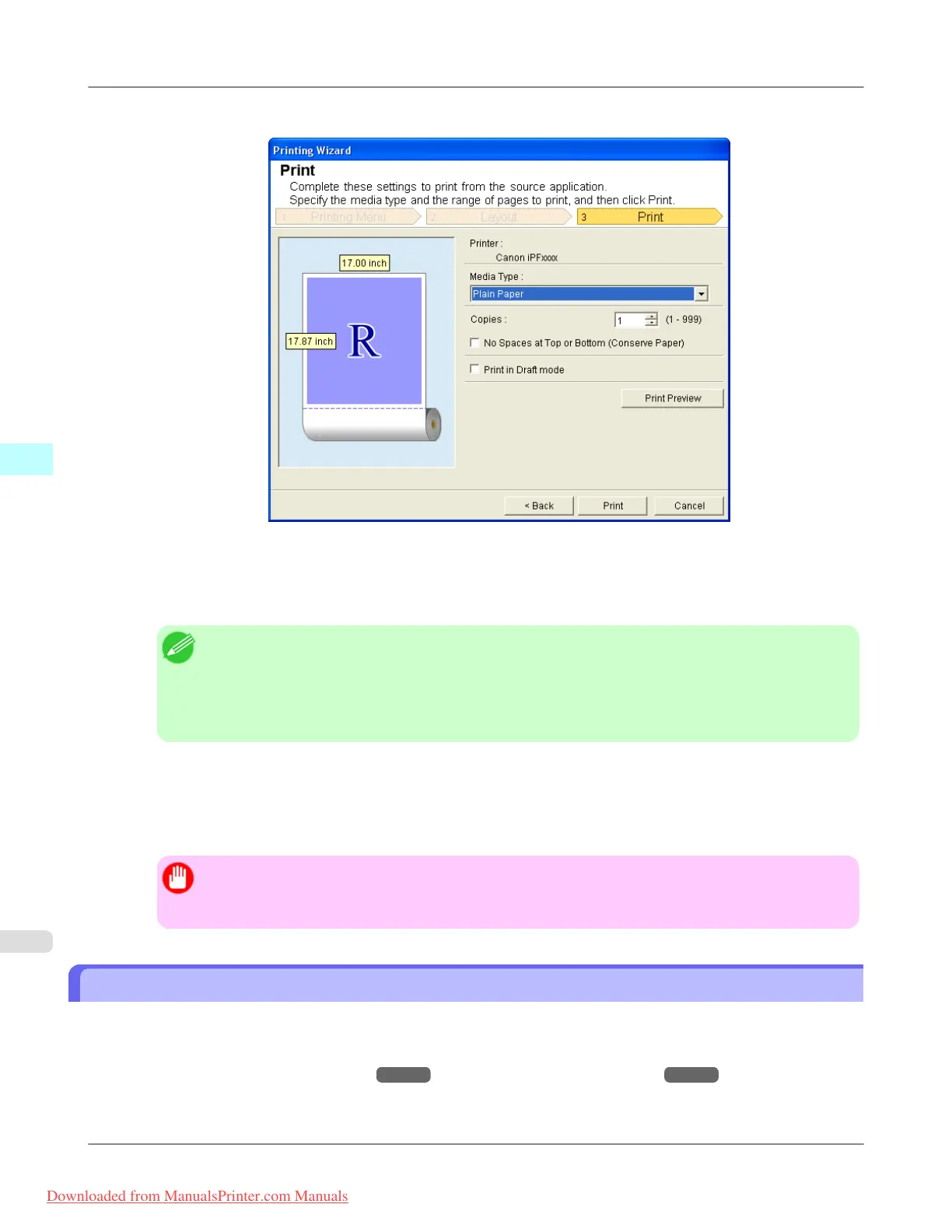1. Configure the settings up to Layout Selection in the Layout screen in Print Entire Sheet or Print Selected Area.