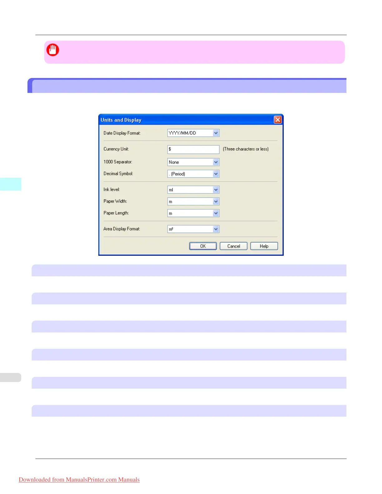 Configuring Units and Display Settings in Accounting Manager iPF8300