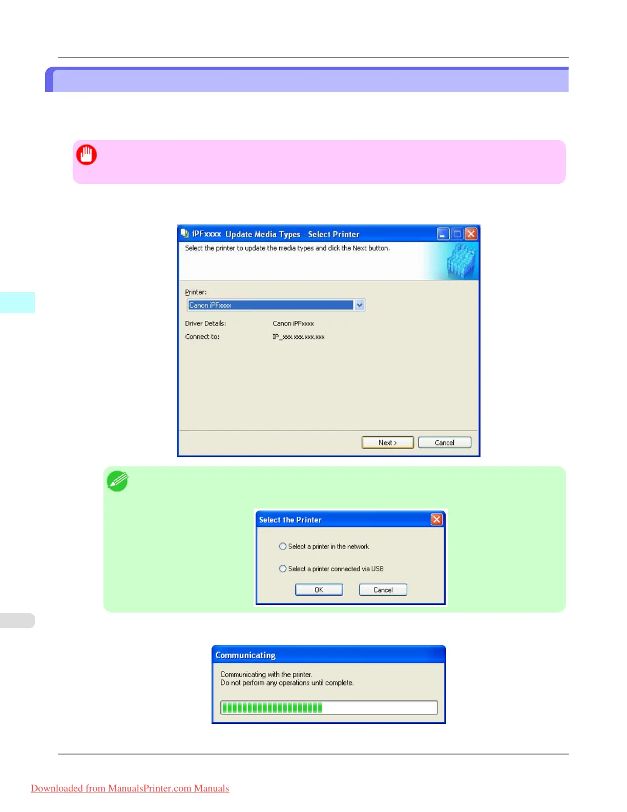 2. Communication with the printer starts and the following dialog box is displayed.