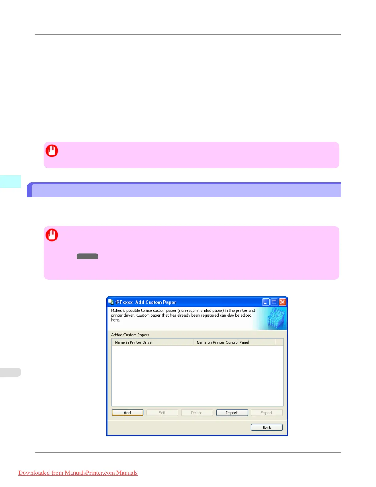 • Custom paper added using the add custom paper function can only be used by the printer driver. It cannot be