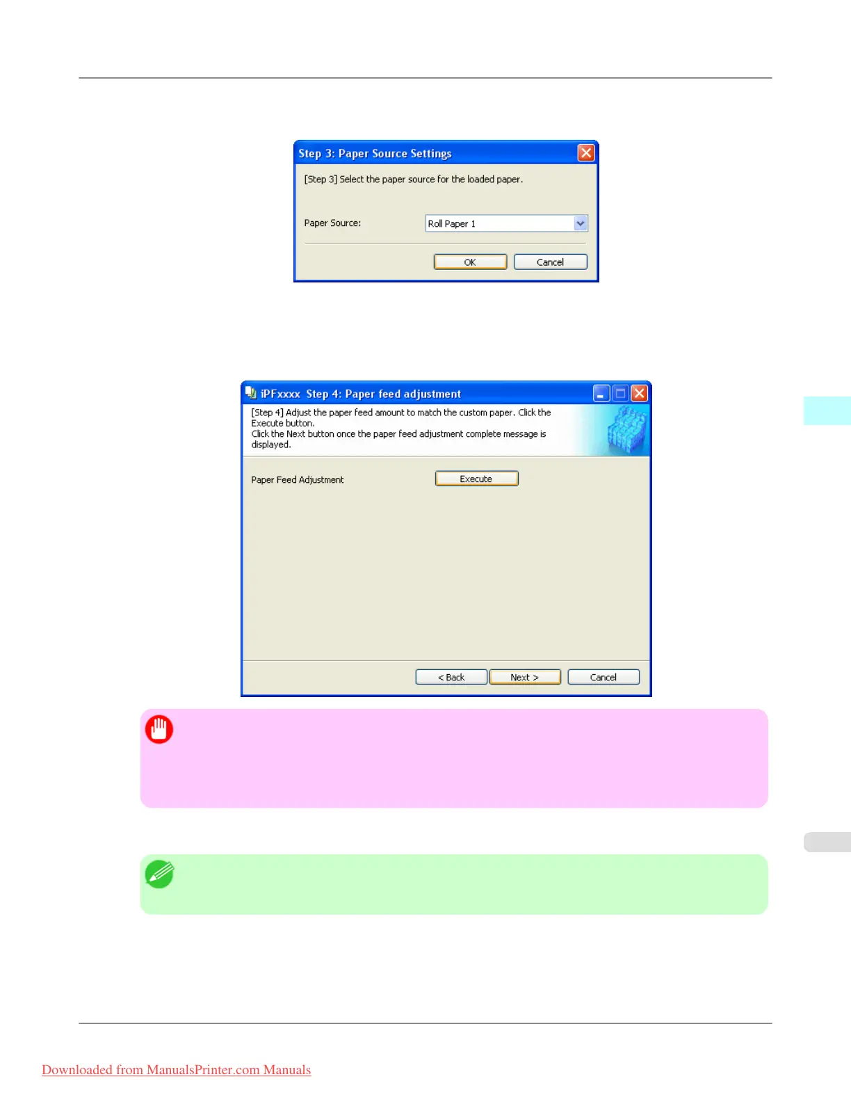 • If a paper source other than Roll Paper is selected in the Step 3: Paper Source Settings dialog box,