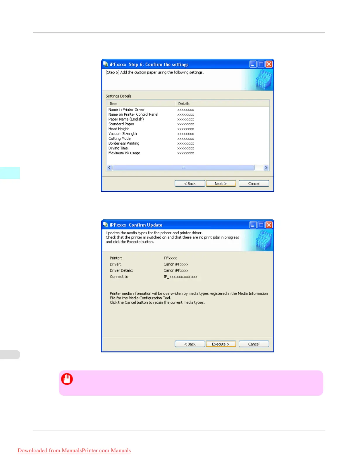 The custom paper is added to the control panel of the printer and to the printer driver of the PC you are using.