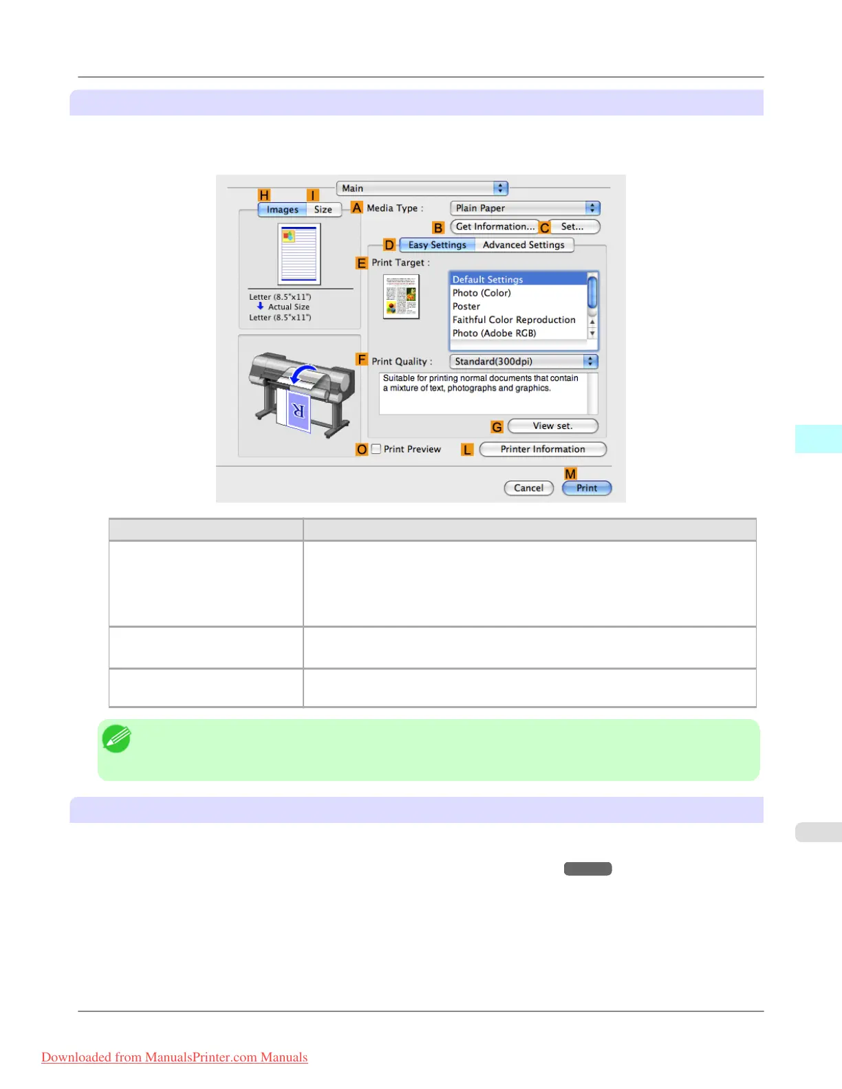 • To confirm the Print Target specified in Easy Settings, click G View set. on the Main pane to display the