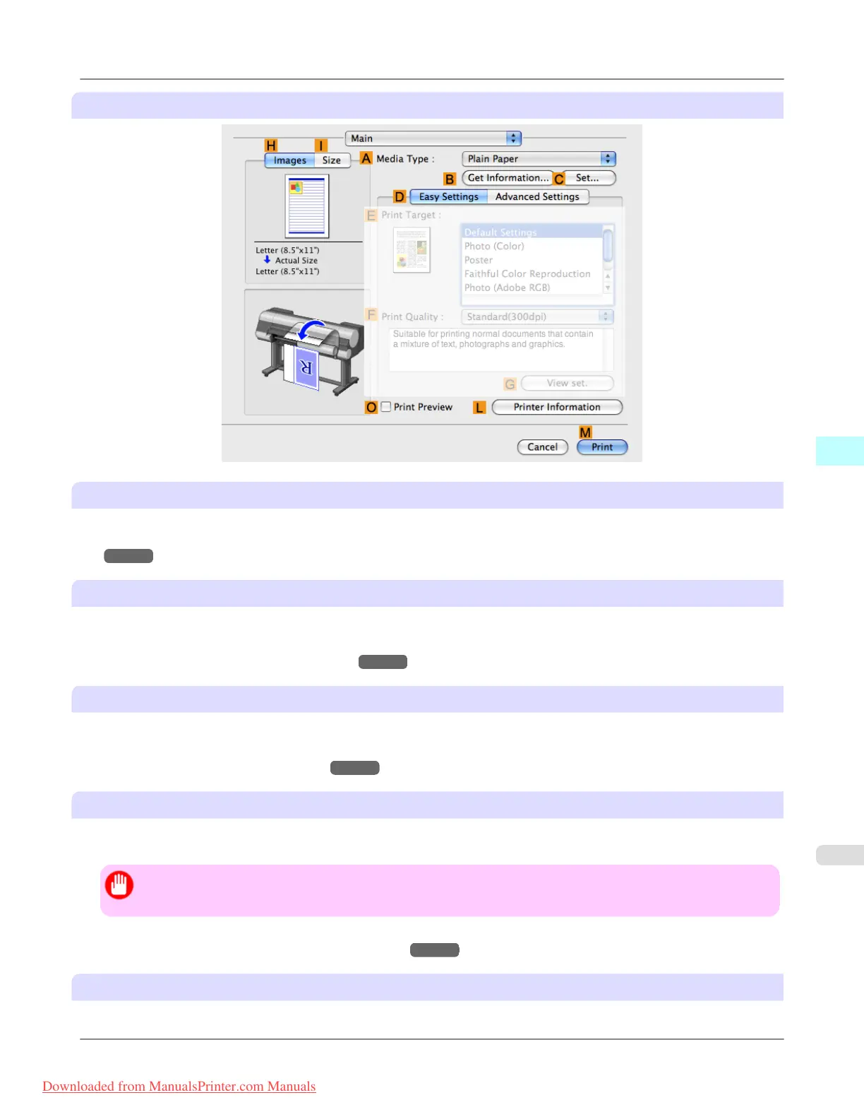 Displays Paper Detailed Settings. You can configure the printing settings to match the type of media, such as the ink dry-