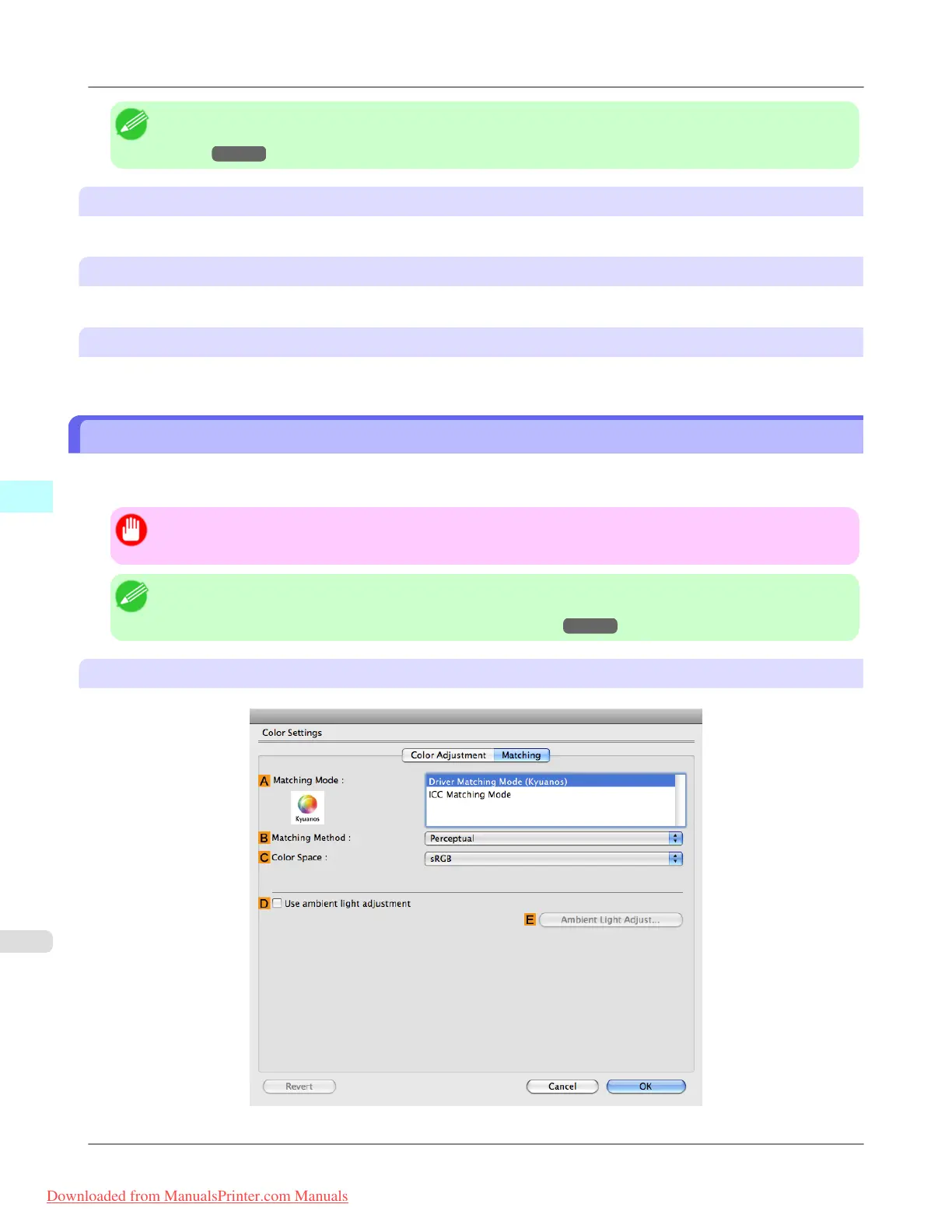 • If No color correction is selected under Color Mode, the Matching pane is not displayed.
