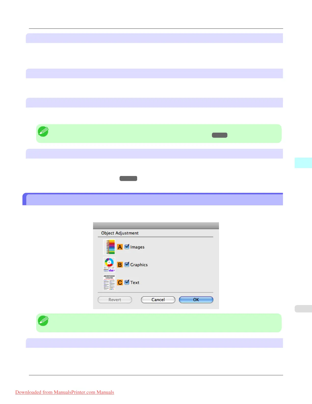 In the Object Adjustment dialog box, you can specify what type of print jobs to apply color adjustment to. If an original