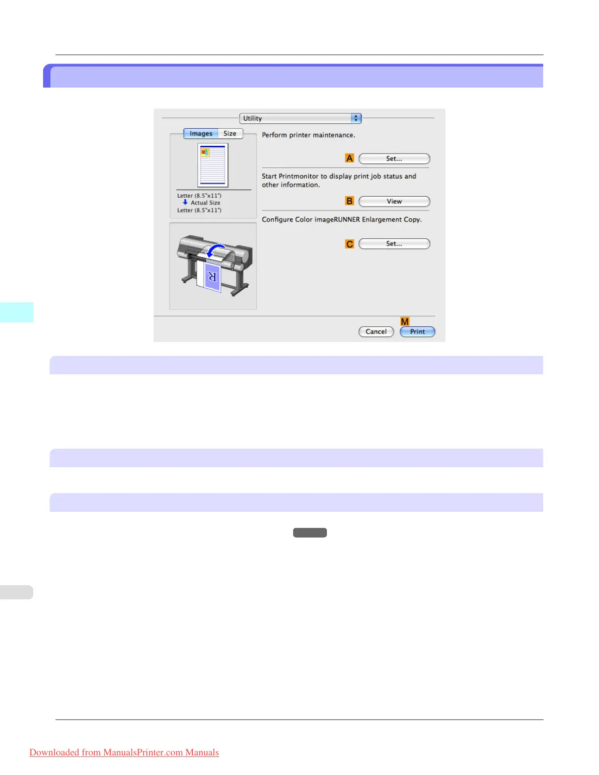 Click to start imagePROGRAF Printmonitor, which enables you to view the status of print jobs.