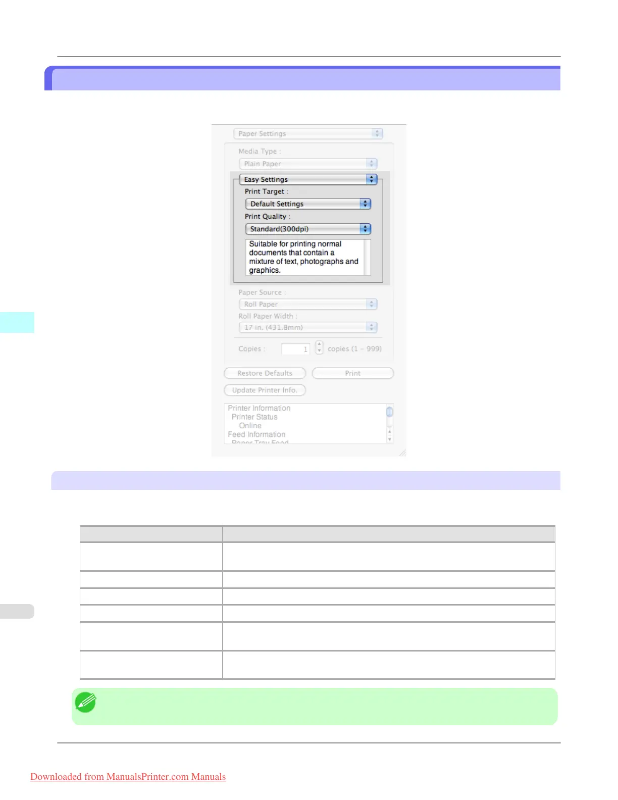 Default Settings Suitable for printing normal documents that contain a mixture of text, photographs,