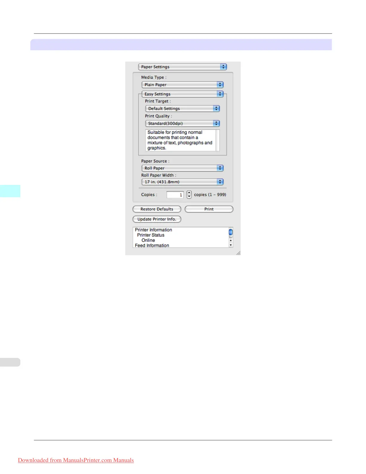 This allows you to set the print conditions and perform a print job.