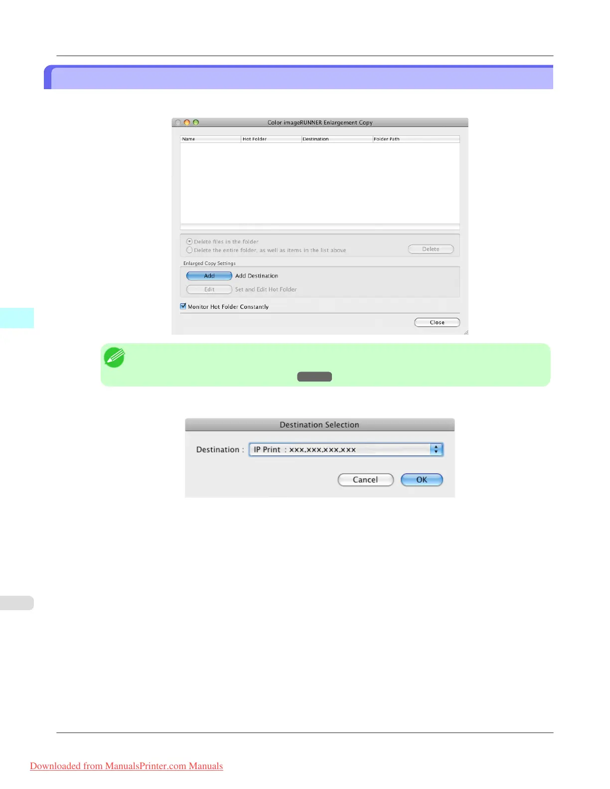 2. Click the Add button in Enlarged Copy Settings to open the Destination Selection dialog box.