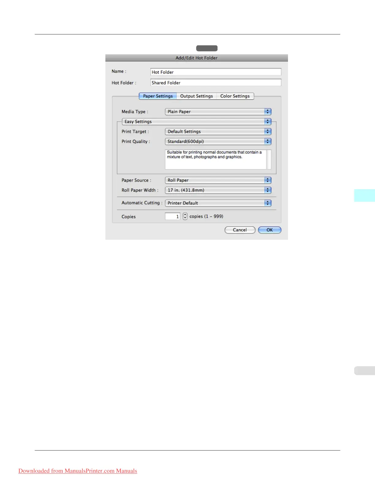 iPF8300 Editing a Hot Folder (Setting Print Conditions)