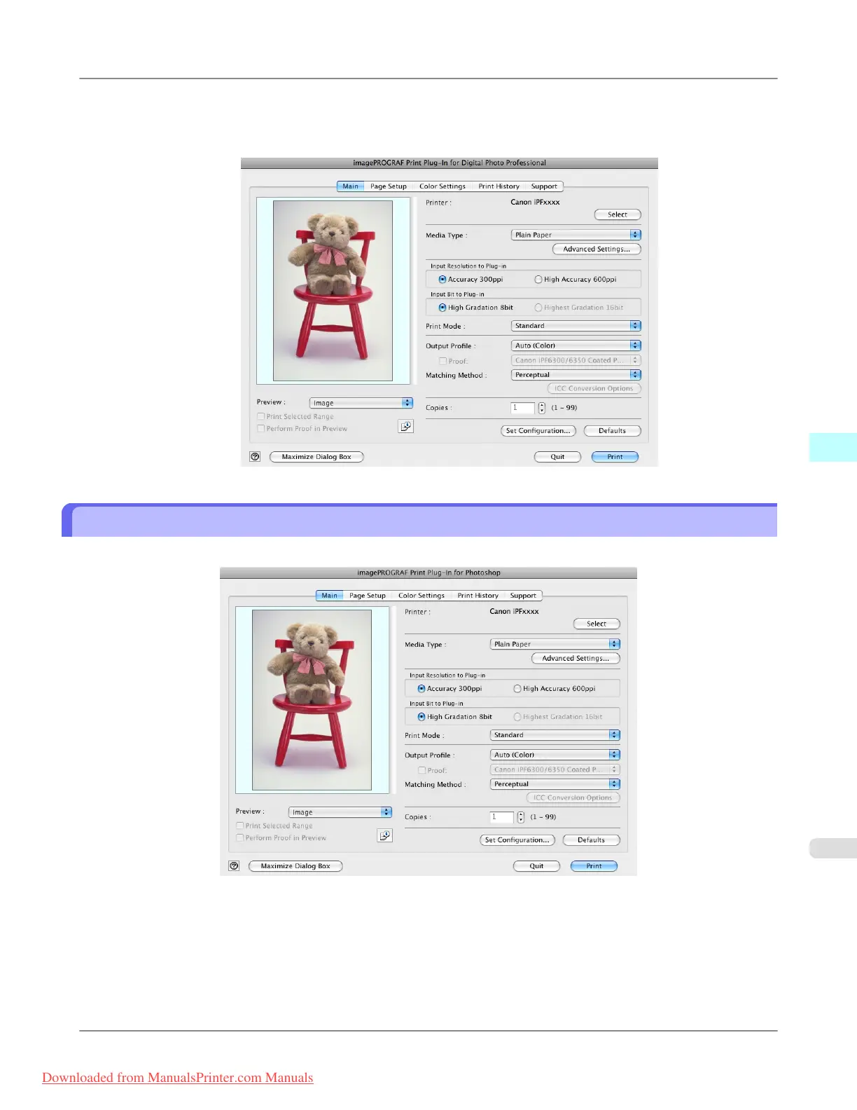 The imagePROGRAF Print Plug-In for Digital Photo Professional window (hereinafter referred to as the Print Plug-