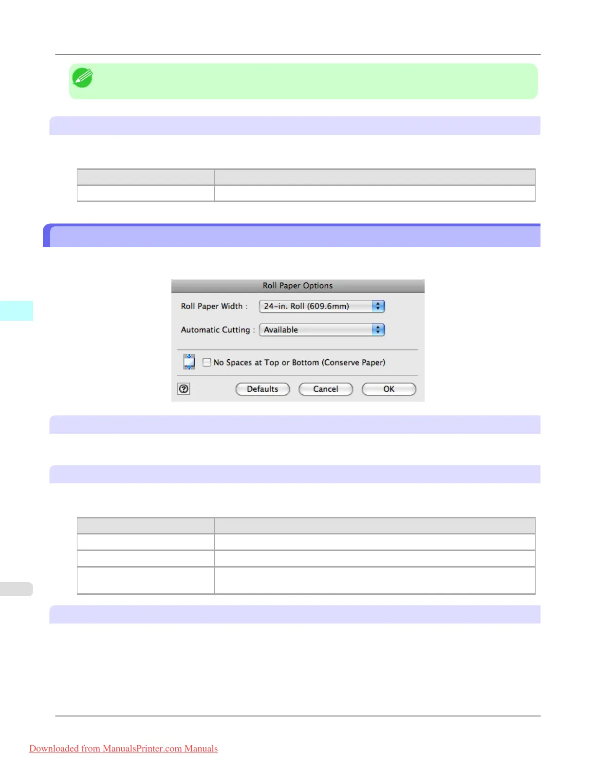 This dialog box appears when you click the Roll Paper Options button on the Page Setup Sheet. You can set the roll paper
