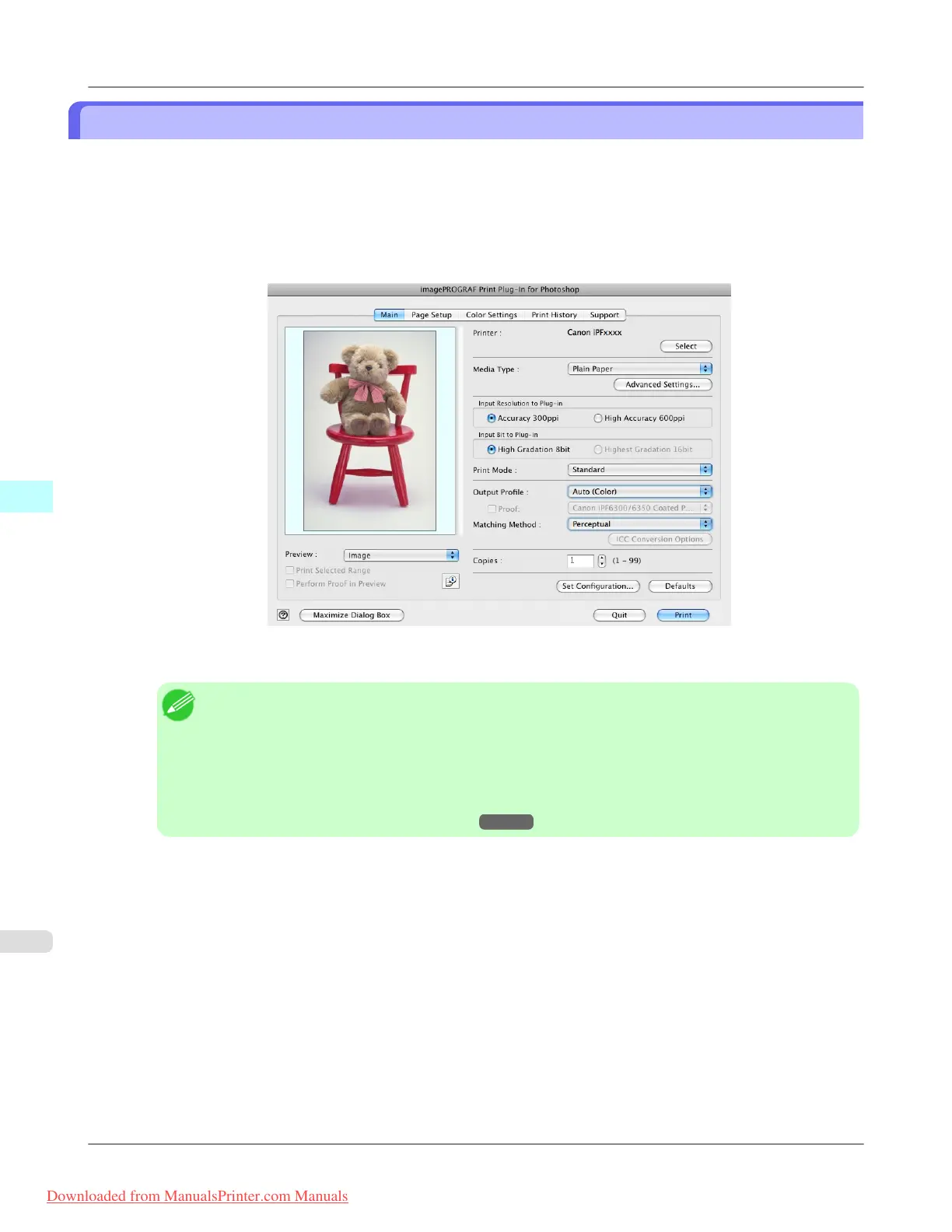 • The details of Output Profile you have set is saved even when you close the Print Plug-In, but when