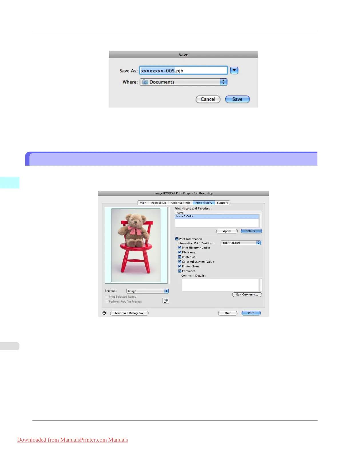4. Input the name of the print history in Save As in the Save dialog box, and click the Save button.