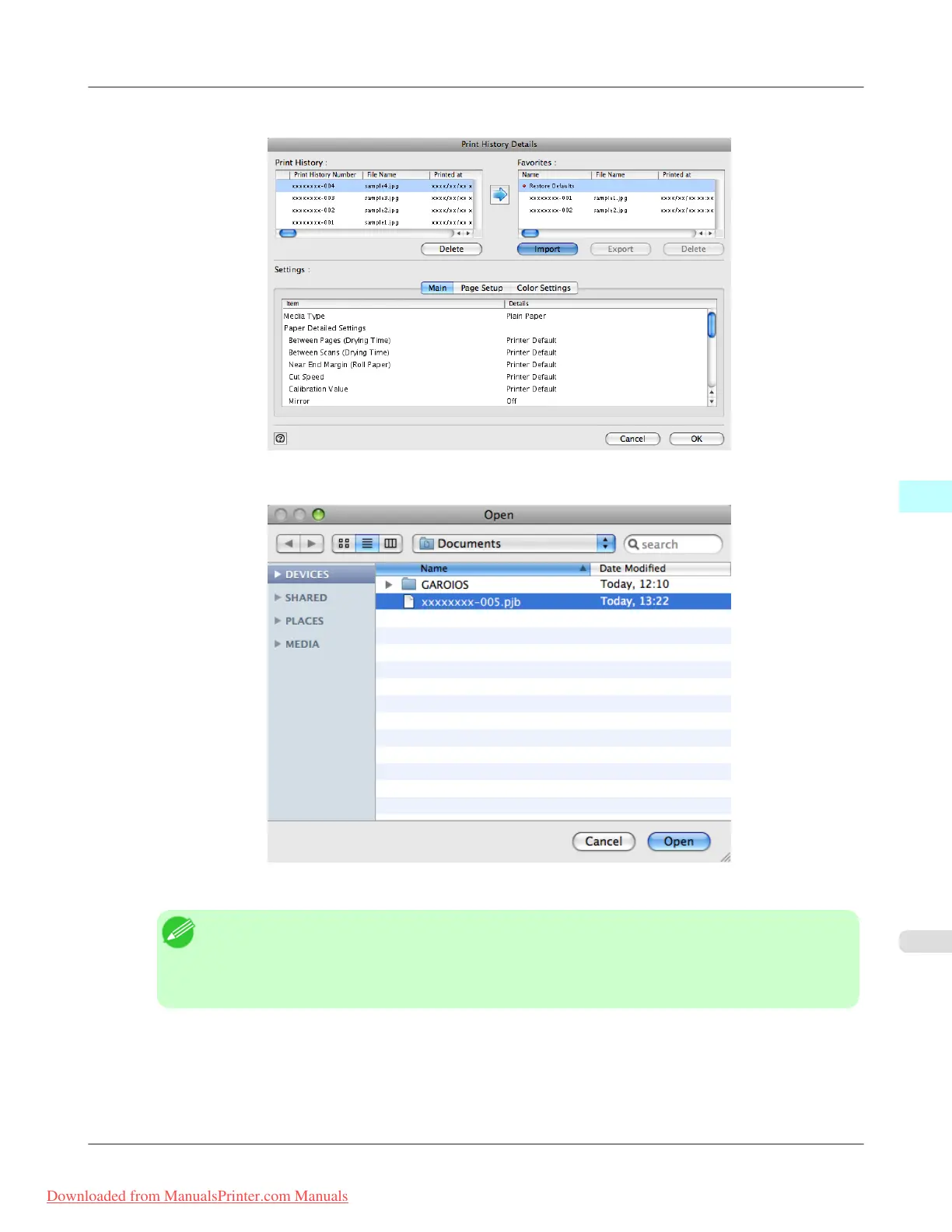 • You cannot import a print history file exported from a different printer in Print Plug-In.