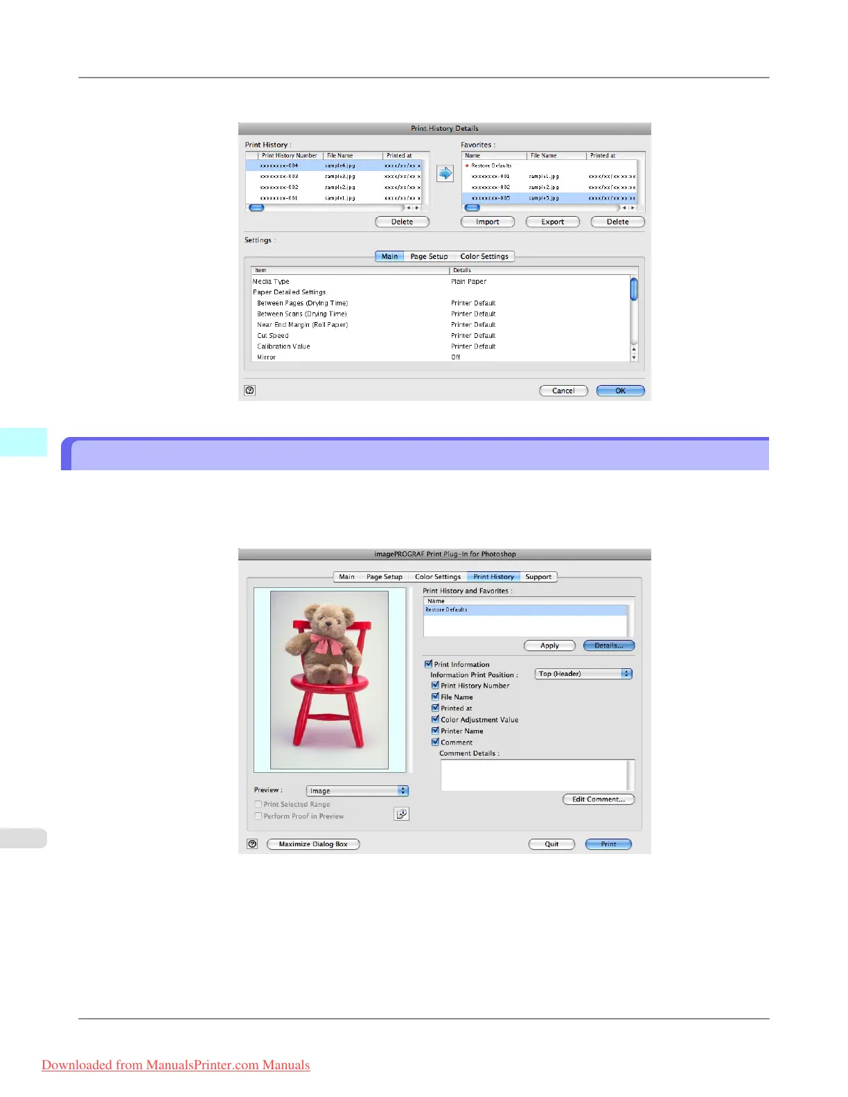 Delete Print History from Print Preferences iPF8300