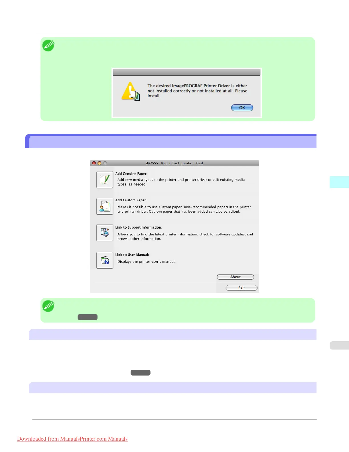 • If a compatible printer driver is not installed, the Media Configuration Tool will not start. If you attempt to