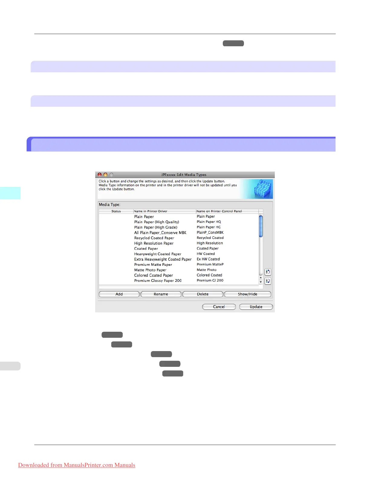 Refer to Using Paper Other Than Genuine Paper/Feed Confirmed Paper →P.694 for details on Add Custom Pa-