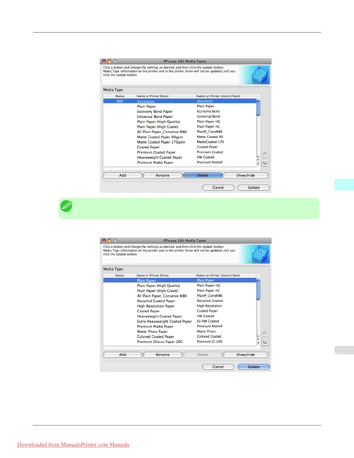 • Only paper for which Status in the Media Type is Add can be deleted.