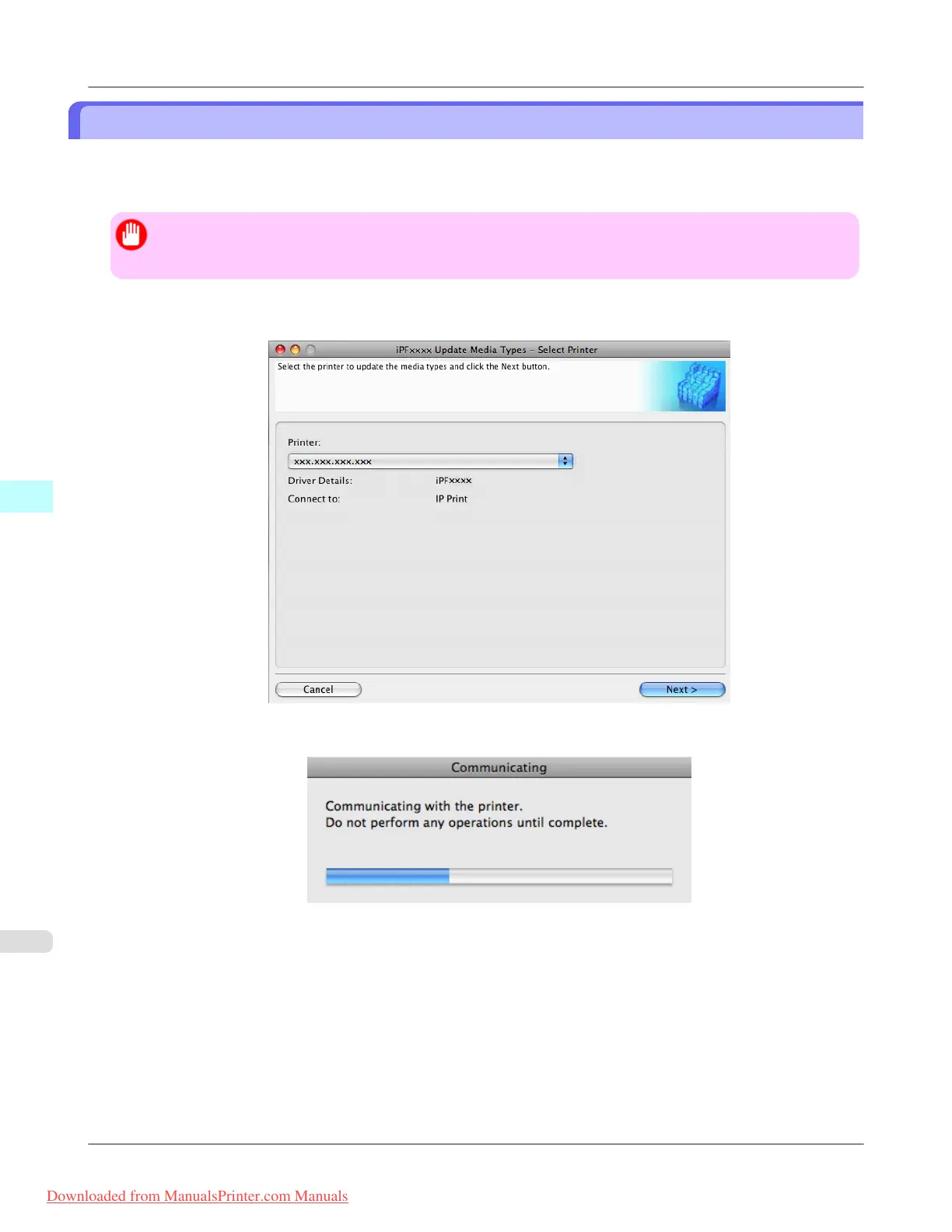 1. Confirm the printer, where media type information is to be updated, to be displayed in Printer in the Update Media