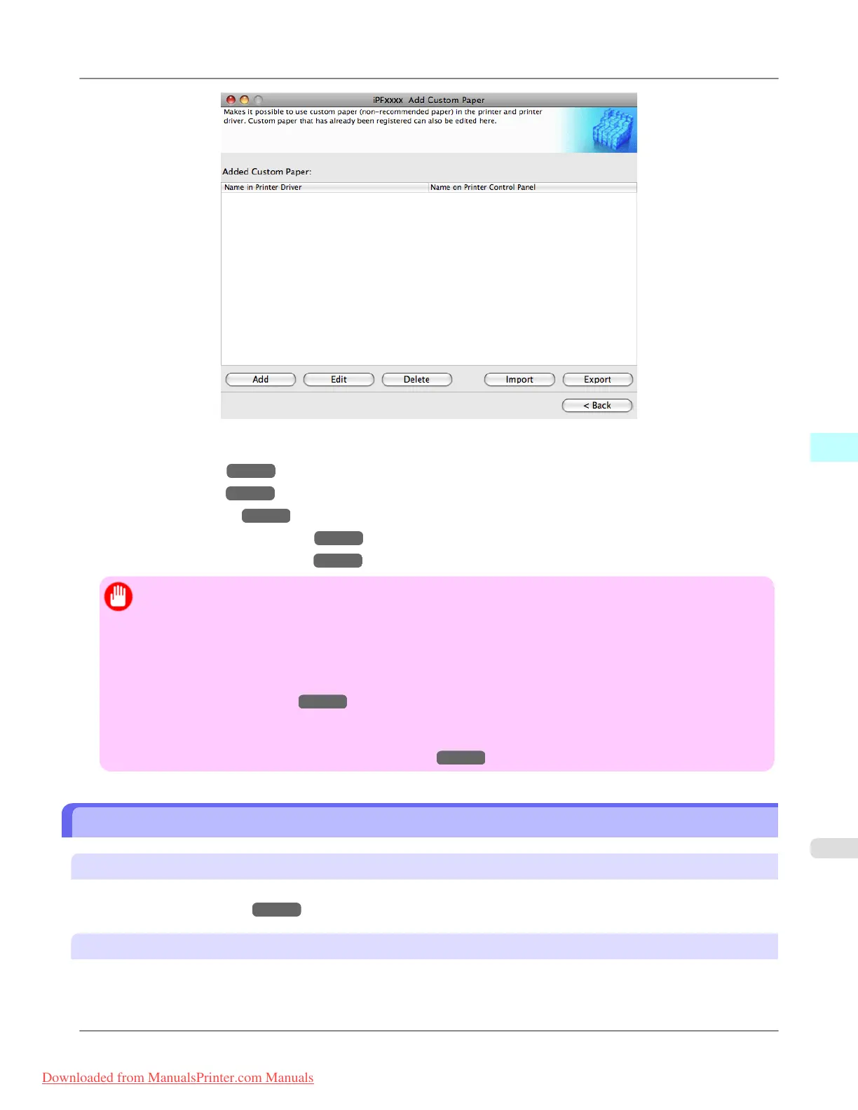 • When adding, editing, or deleting custom paper, make the same changes on all of the other PCs that use the
