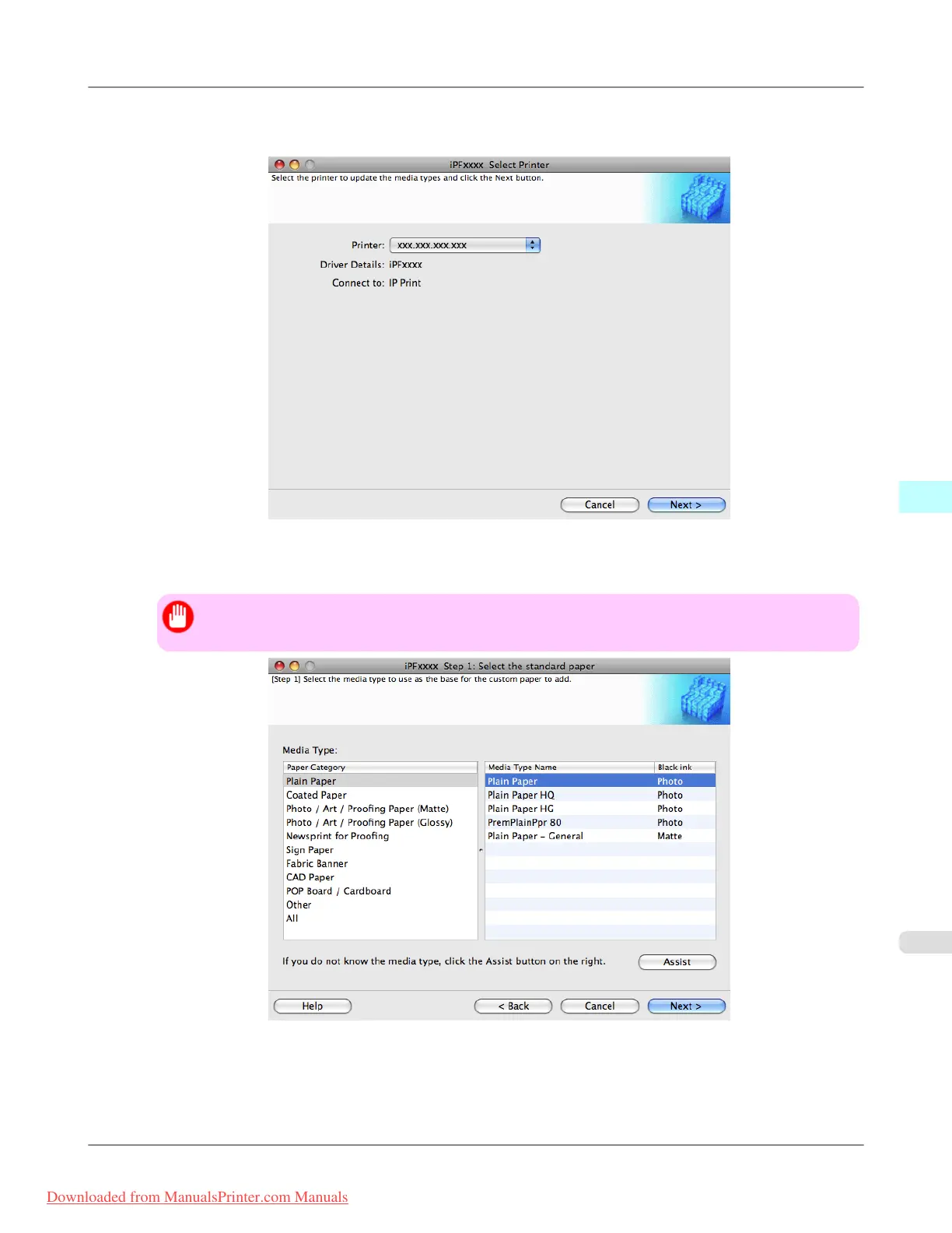 3. The Step 1: Select the standard paper dialog box is displayed. In Paper Category, select the category of media
