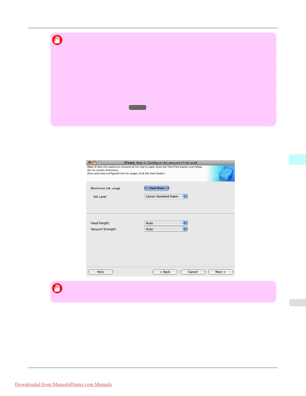 10. The Step 5: Configure the amount of ink used dialog box is displayed.