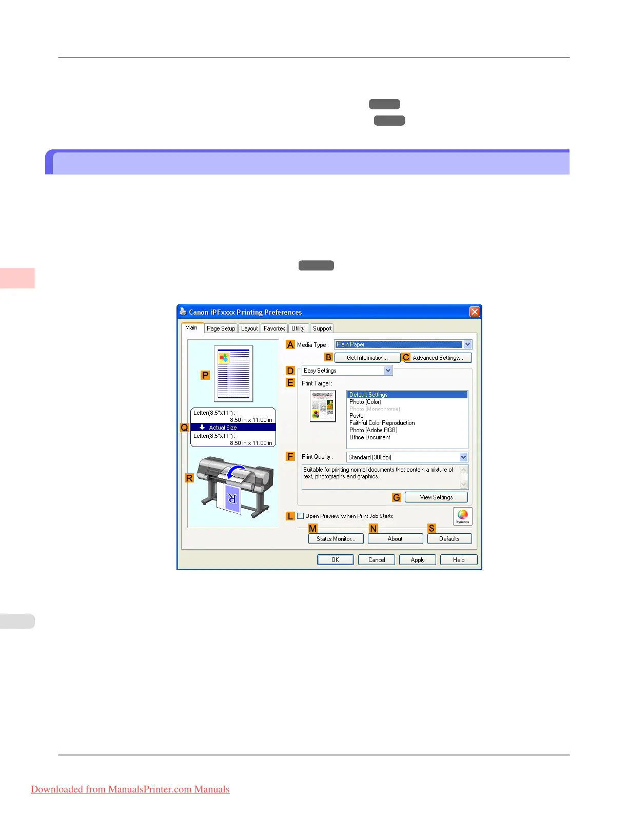 Choosing the Document Type and Printing Conditions (Windows) iPF8300