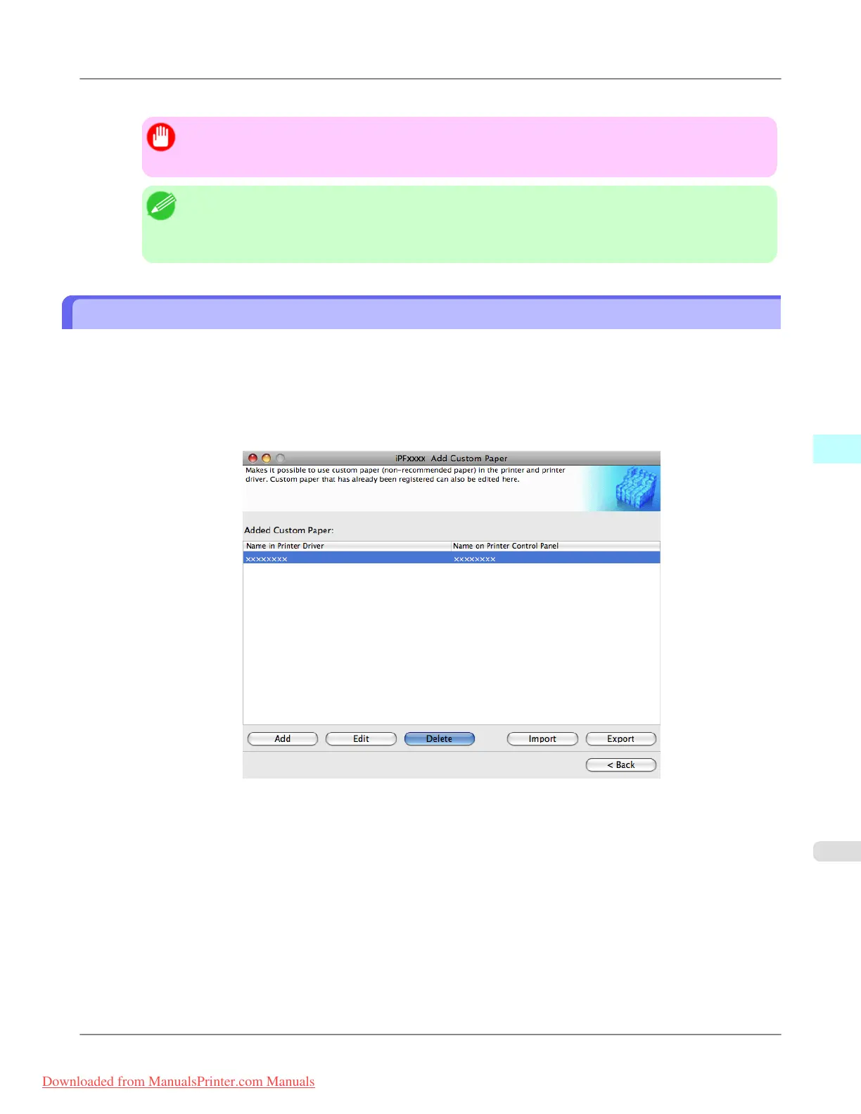 2. Select the paper you want to delete from the Added Custom Paper list and then click the Delete button.